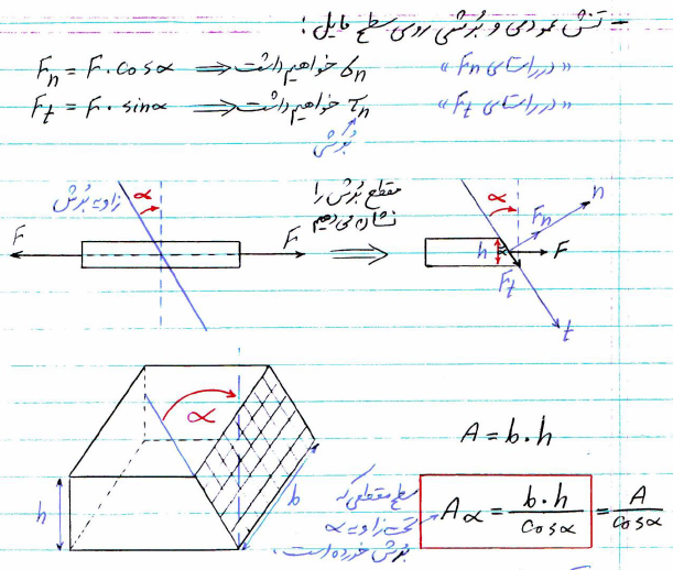 تنش عمودی و برشی روی سطح مایل